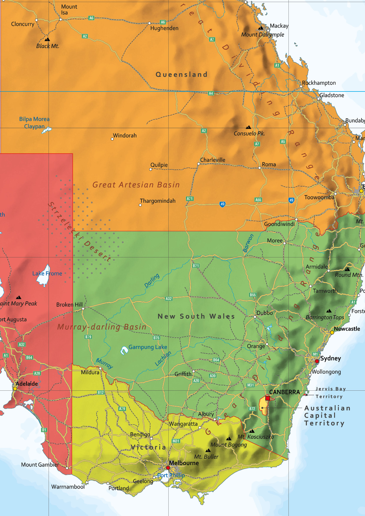 This political digital vector map of Australia and New Zealand shows all provinces in clearly distinguished colours, creating an organised overview of administrative divisions. Capitals, major cities, smaller towns and local settlements are presented in a structured layout. Road networks, railway lines, water bodies and regional features are clearly depicted. Natural characteristics such as deserts, mountain peaks and ocean depth areas add geographic context to the map. Designed as a digital vector map, all elements remain precise at any scale, making it suitable for design studios, publishers and organisations that require accurate political and geographic information for visual or educational applications.