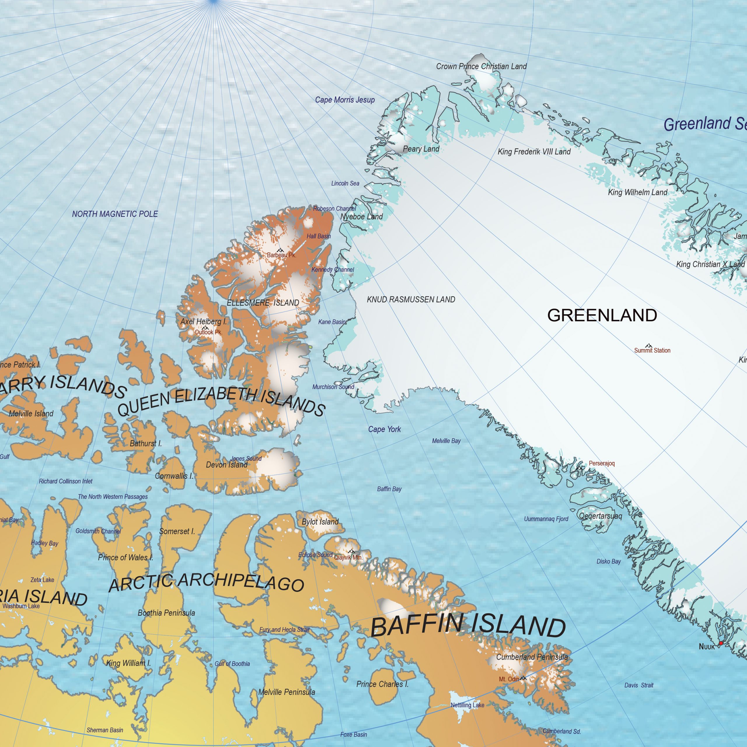 This political digital vector map of the Arctic Region presents a clear and well-structured overview of the northern polar area and its surrounding territories. National boundaries and regional divisions are clearly indicated, offering insight into the political geography of the Arctic. The use of smooth colour gradients enhances regional distinction while maintaining a calm and readable visual balance. Coastlines, land masses and polar features are displayed in a clean layout that supports geographic orientation. Designed as a digital vector map, all elements remain sharp at any scale, making the map suitable for professional use in design, publishing and educational contexts focused on polar geography.