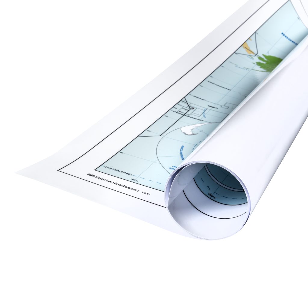 De gelamineerde kaarten zijn op ieder formaat tot een breedte van 140 cm af te drukken, lengte onbeperkt. Tegen een meerprijs kan de kaart ook van dubbelzijdig laminaat voorzien worden. De kaart kan dan gebruikt worden in licht vochtige ruimtes.
