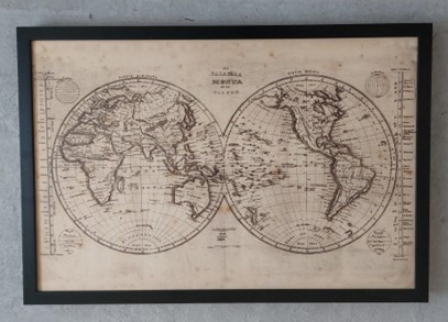 Standaard wordt de kaart in een zwarte houten lijst geleverd. De kaart kan ook als foambord zonder lijst worden geleverd zodat u bij een lijstenmaker de kaart van een lijst naar keuze kan voorzien.