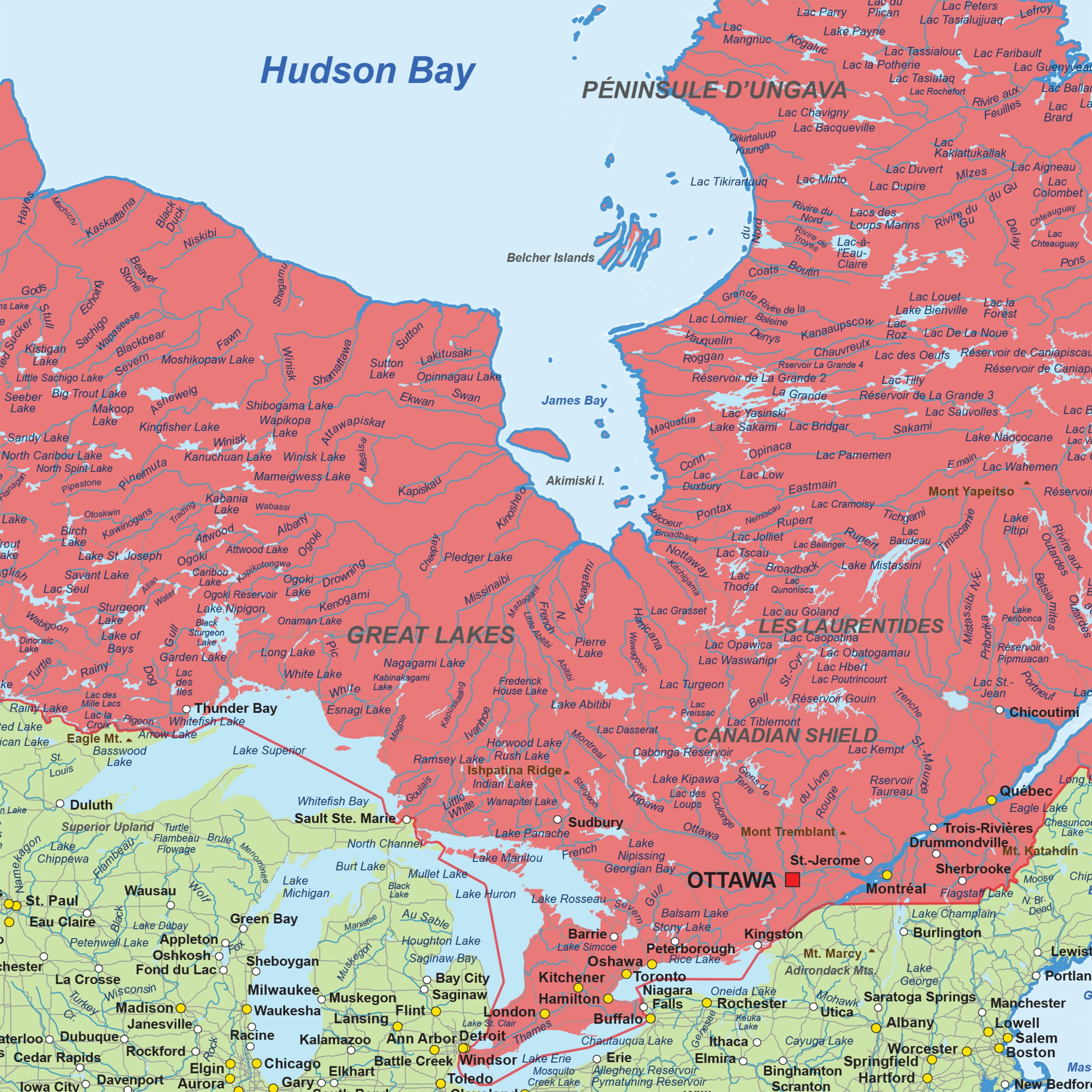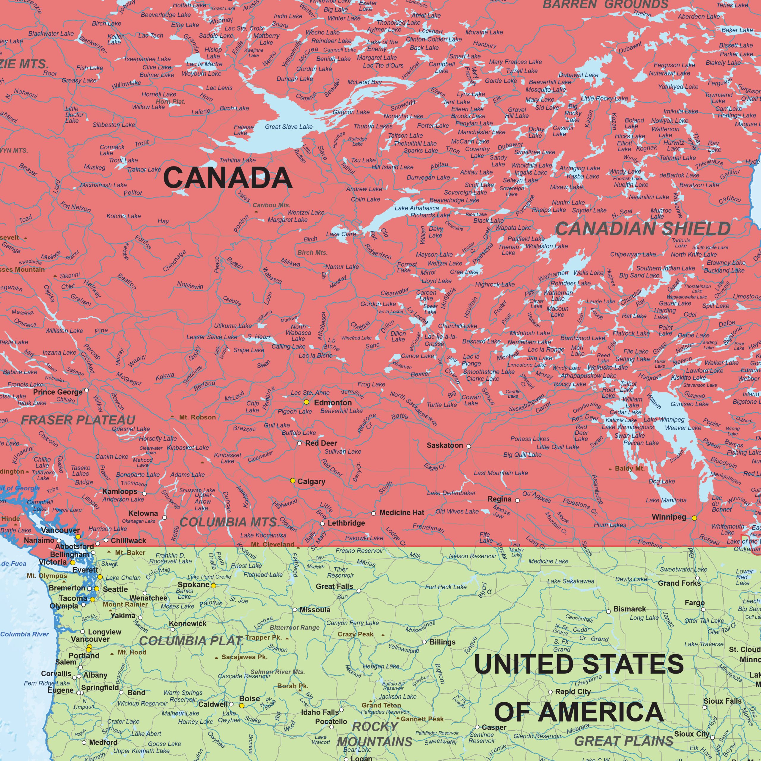 This political digital vector map of North America presents a detailed and structured overview of the continent, with each country displayed in its own colour for clear recognition of administrative boundaries. Capitals, major and smaller cities, rivers, water bodies, main routes and mountain regions are arranged in a readable layout that supports professional geographic interpretation. The design features a modern colour scheme that enhances clarity while maintaining a neutral and contemporary appearance. As a digital vector map, all elements stay precise at any scale, making the map suitable for design studios, publishers and organisations requiring accurate political information for print or digital projects.
