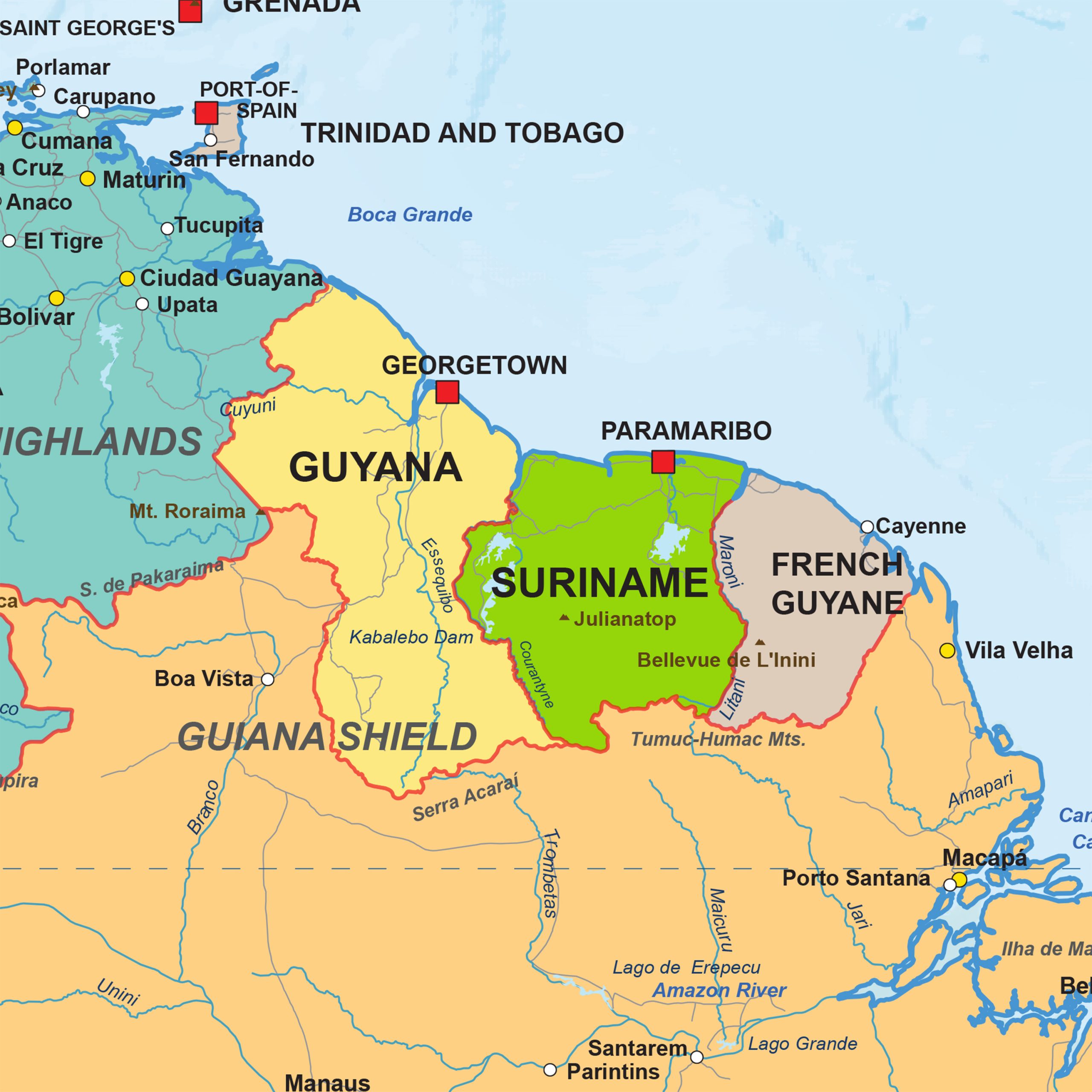 This political digital vector map of South America provides a clear and detailed overview of the continent’s administrative structure. Each country is presented in its own colour, while capitals, major cities and smaller population centres are shown in separate colour groups to support easy visual interpretation. Rivers, water bodies, main road networks, mountain regions and coastal features are arranged in a balanced and readable layout. Developed as a digital vector map, all elements remain sharp at any scale, making it a practical geographic foundation for design studios, publishers and organisations that require accurate political information for print or digital use.