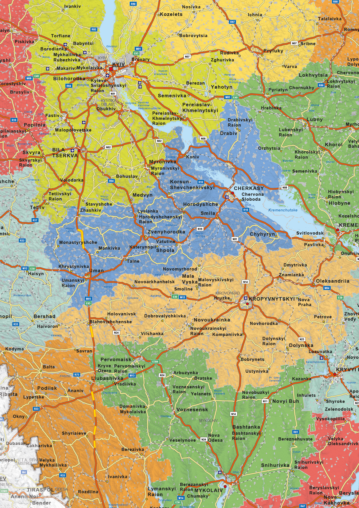 This detailed political digital vector map of Ukraine offers an in-depth overview of the country’s administrative and geographic structure. Provinces are clearly differentiated by colour, making boundaries easy to recognise and interpret. The map includes a large number of cities and towns, as well as rivers, water bodies, main roads and secondary routes, with key road numbers clearly indicated. Despite the high density of information, the layout remains balanced and legible. Designed as a digital vector map, all elements remain sharp at any scale, making it suitable for professional design, publishing and analytical applications where precise geographic detail is required.
