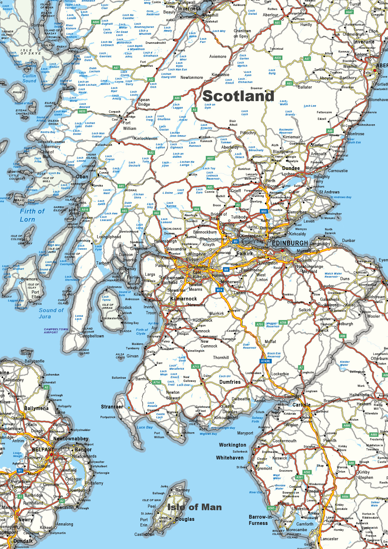 This detailed road digital vector map presents the United Kingdom and Ireland with a clear focus on accessibility and transport structure. Major highways, primary roads and key connections are clearly displayed, supported by visible route numbering that enhances orientation and route planning. Larger cities and important towns are shown alongside waterways, creating a balanced and practical overview of the region. The underlying topographic structure supports readability without overwhelming the road network. The clear hierarchy of information ensures that roads and settlements remain easy to interpret, making the map suitable for geographic reference, transport analysis and professional visual applications.