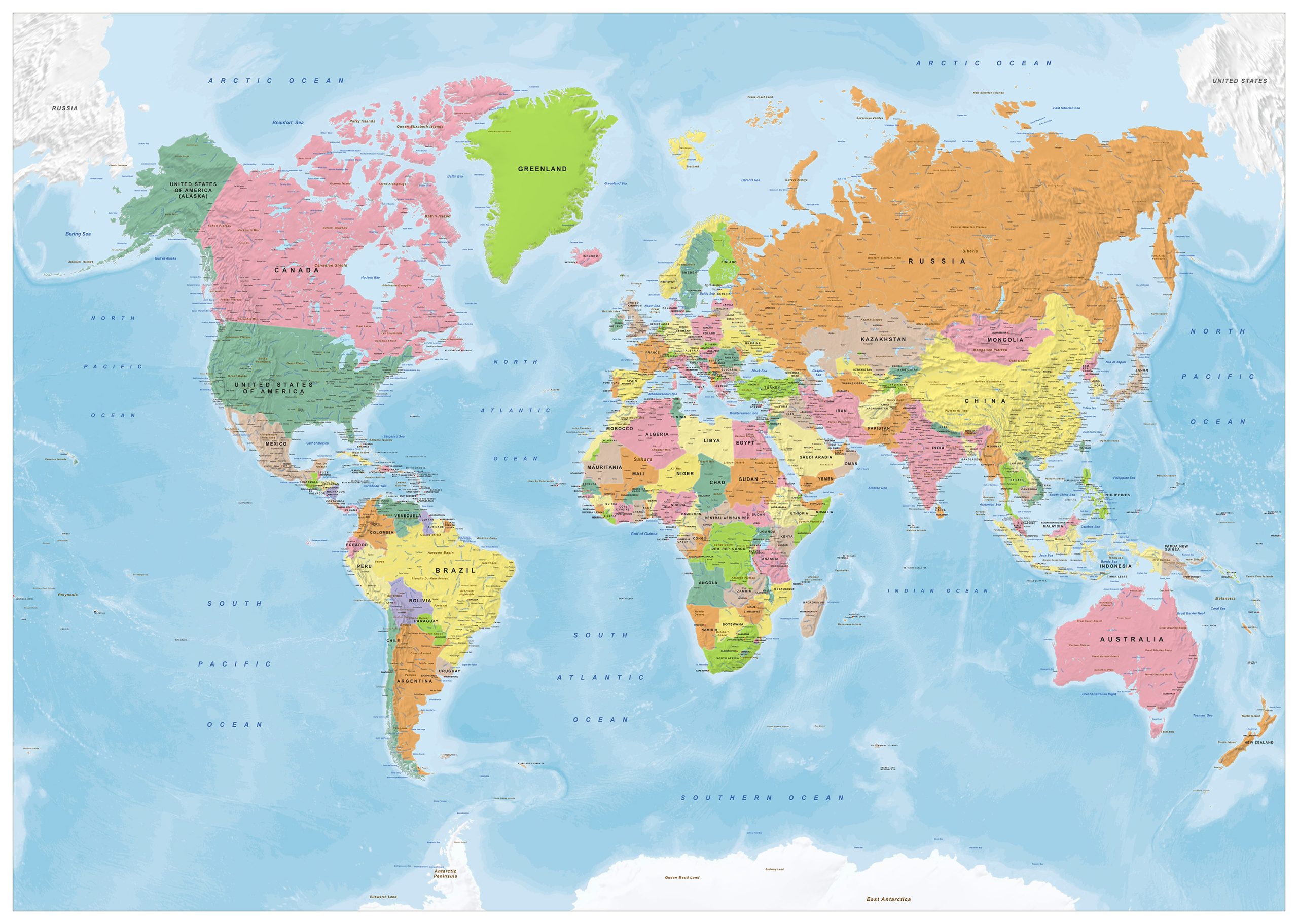 This digital vector map presents a political world layout in the Van der Grinten projection, using a fresh and balanced colour scheme. The design includes a large number of place names, giving the map a detailed and structured appearance suitable for professional use. Country borders, water bodies and other key geographic features are shown clearly, offering a reliable and consistent foundation for design work, publishing tasks and corporate applications. The digital vector map is suitable for a wide range of print and digital formats.