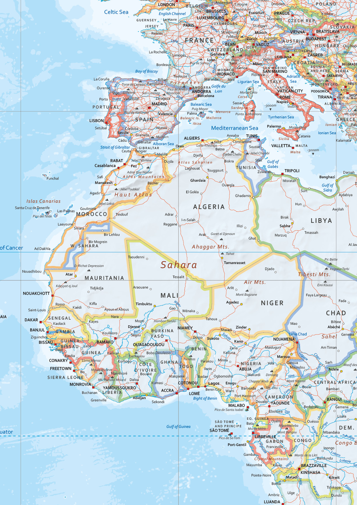 Detailed map with elevation / political borders