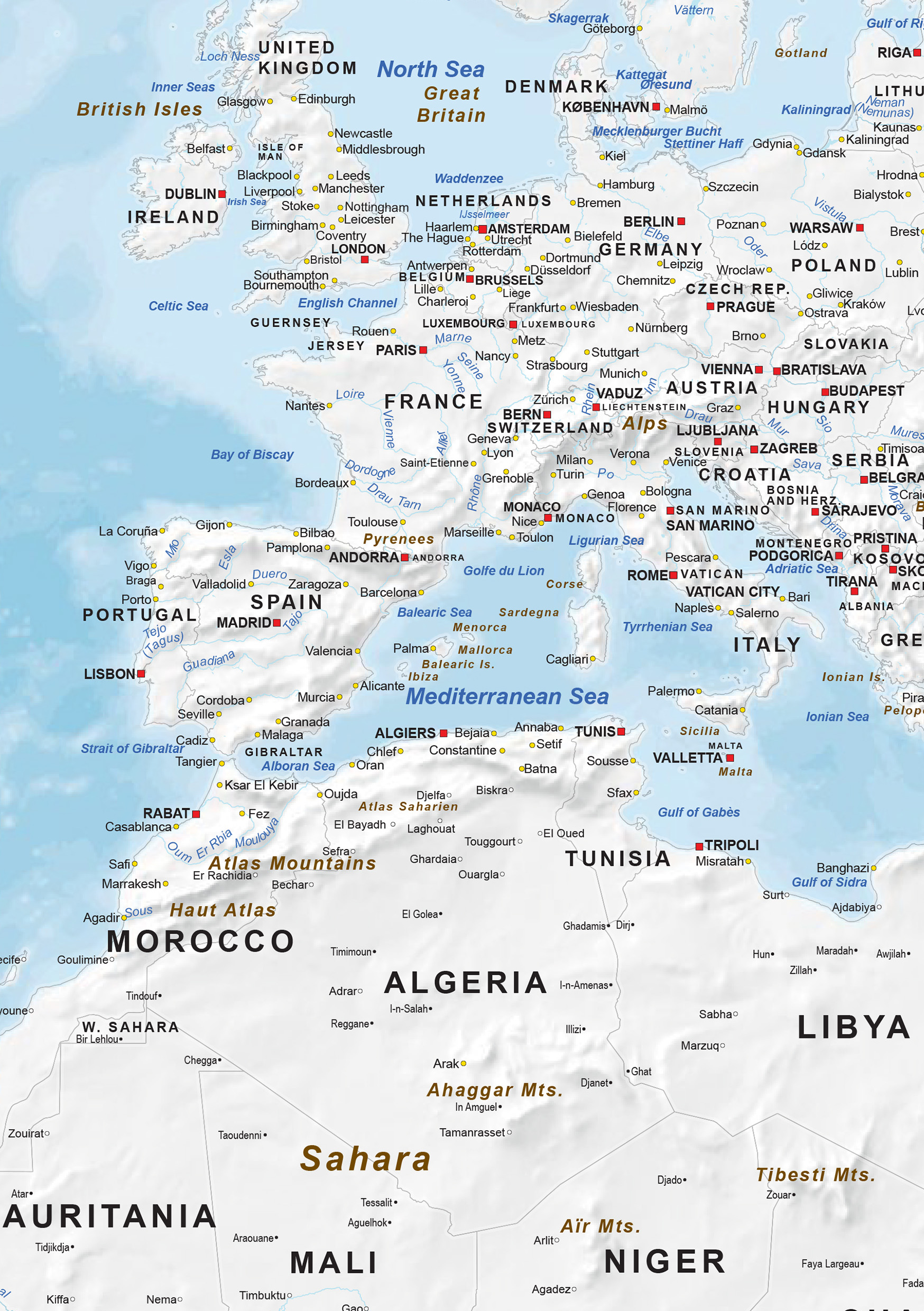 Detailed map with elevation / political borders