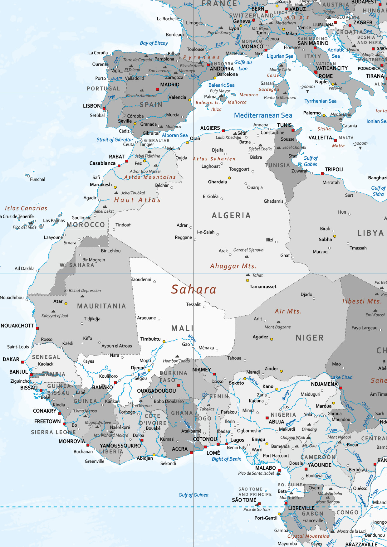 EPS files can also be delivered as .PDF or .AI files. More complex maps can be created on request.